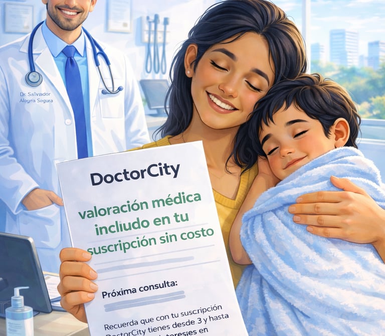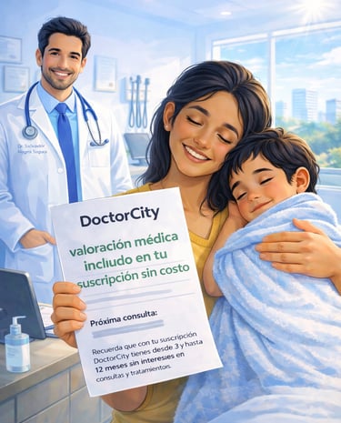 ✅ No te preocupes, DoctorCity te ofrece una suscripción familiar gratuita, con hasta 12 valoraciones médicas incluidas sin costo.
